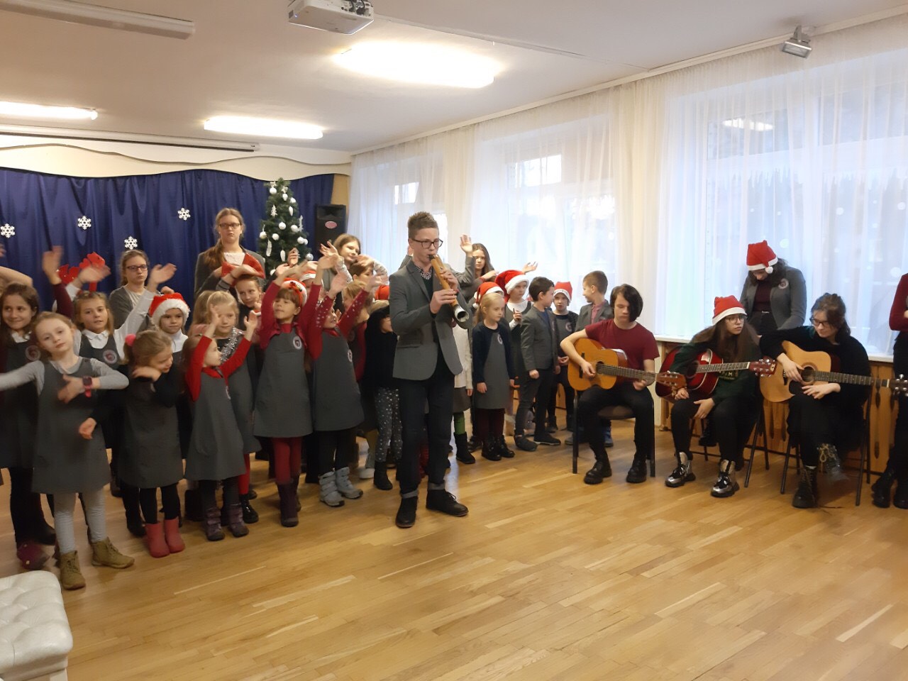 Jau tradiciškai, kiekvienais metais gruodžio mėnesį, Vilniaus šv. Kristoforo progimnazijos mokiniai keliauja sveikinti mažųjų draugų į Vilniaus miesto darželius. Neišimtis ir šie metai. Į l/d „Žirniukas” ir “Švelnukas” keliavo visas būrys 1-8 kl. mokinių, kurie padovanojo mažiesiems smagų koncertą. Džiugu, kad šiais metais prie Kalėdinių sveikinimų prisijungė ir Vilniaus kolegijos Pedagogikos fakulteto studentės – Ramunė, Kamilė, Anželika, Alina, Birutė, Aurelija ir Sabina (PU17). Merginos padėjo mokiniams pasirengti pasirodymui. Vaikai grojo, dainavo, šoko ir dovanojo mažiesiems šventinę nuotaiką. Mokinius ir studentes kuravo Vilniaus kolegijos Muzikos didaktikos lektorė Dovilė Miknaitytė.