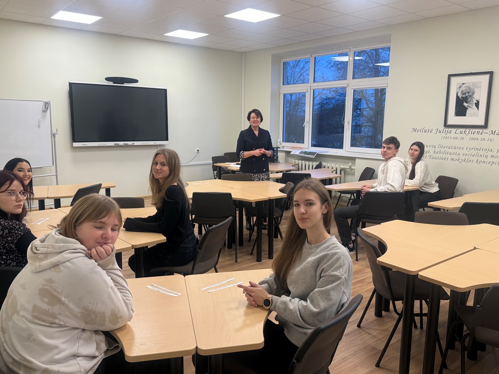 Socialinio darbo stotelėje dėstytoja Jūratė Makauskienė pristatė profesiją žaismingai, pakvietusi mokinius į veiklą „Mitas ar realybė socialiniame darbe?“. Mokiniai diskutavo apie stereotipus, atliko emocijų atpažinimo pratimus ir išbandė empatijos situacijas. Kaip teigia dėstytoja, veikla iš karto įtraukė moksleivius: „Veikla sulaukė didelio susidomėjimo ir įsitraukimo“. Jaunuoliai sužinojo, kad socialinis darbuotojas dirba su įvairiomis žmonių gyvenimo situacijomis, padeda spręsti socialines problemas, o profesija reikalauja emocinio intelekto ir gebėjimo priimti atsakingus sprendimus.