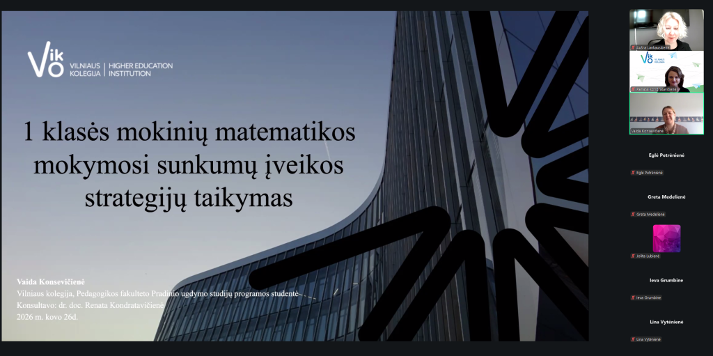 Šioje konferencijoje Vilniaus kolegijos studentės pasirodė ne kaip formalios dalyvės, o kaip jaunosios tyrėjos, gebančios kalbėti apie tai, kas mokykloje iš tiesų svarbu. Eglė Petrėnienė, Vaida Konsevičienė ir Edita Skamarakienė pristatė temas, kurios gimė iš realios ugdymo praktikos, iš klasės gyvenimo, iš pastangos suprasti vaiką ne paviršiumi, o giliau. Tokie pranešimai rodo ne tik akademinį augimą. Jie rodo ir profesinę brandą – gebėjimą pamatyti problemą, rinkti duomenis, ieškoti argumentų ir savo įžvalgomis dalytis platesnėje akademinėje bendruomenėje.